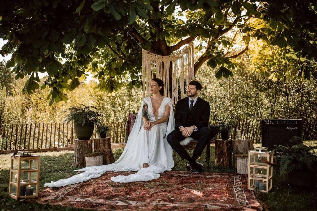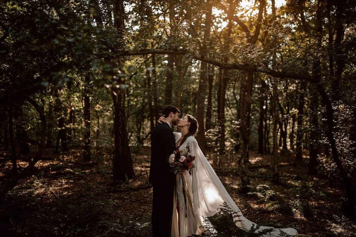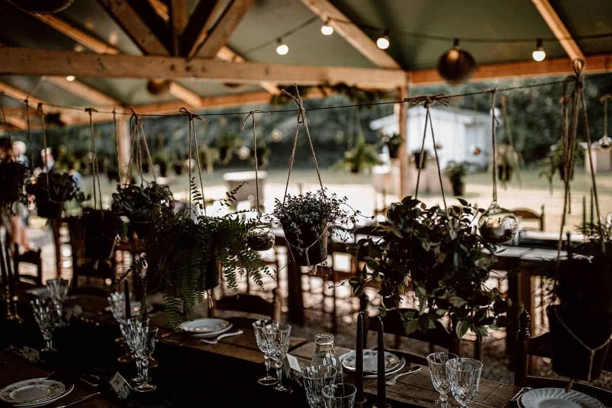 Voor hun bijzondere trouwplannen wisten Dymph en Steven exact wat ze zochten. (En met exact bedoel ik ook echt… EXACT!) Qua sfeer en stijl hadden ze een intiem, moody, bohemian idee voor ogen, met veel mos, varens en hout. En het moest bourgondisch zijn, met véél lekker eten dat gedeeld werd op lange tafels. De zomerse variant van een gezellig kerstfeestje, zeg maar.