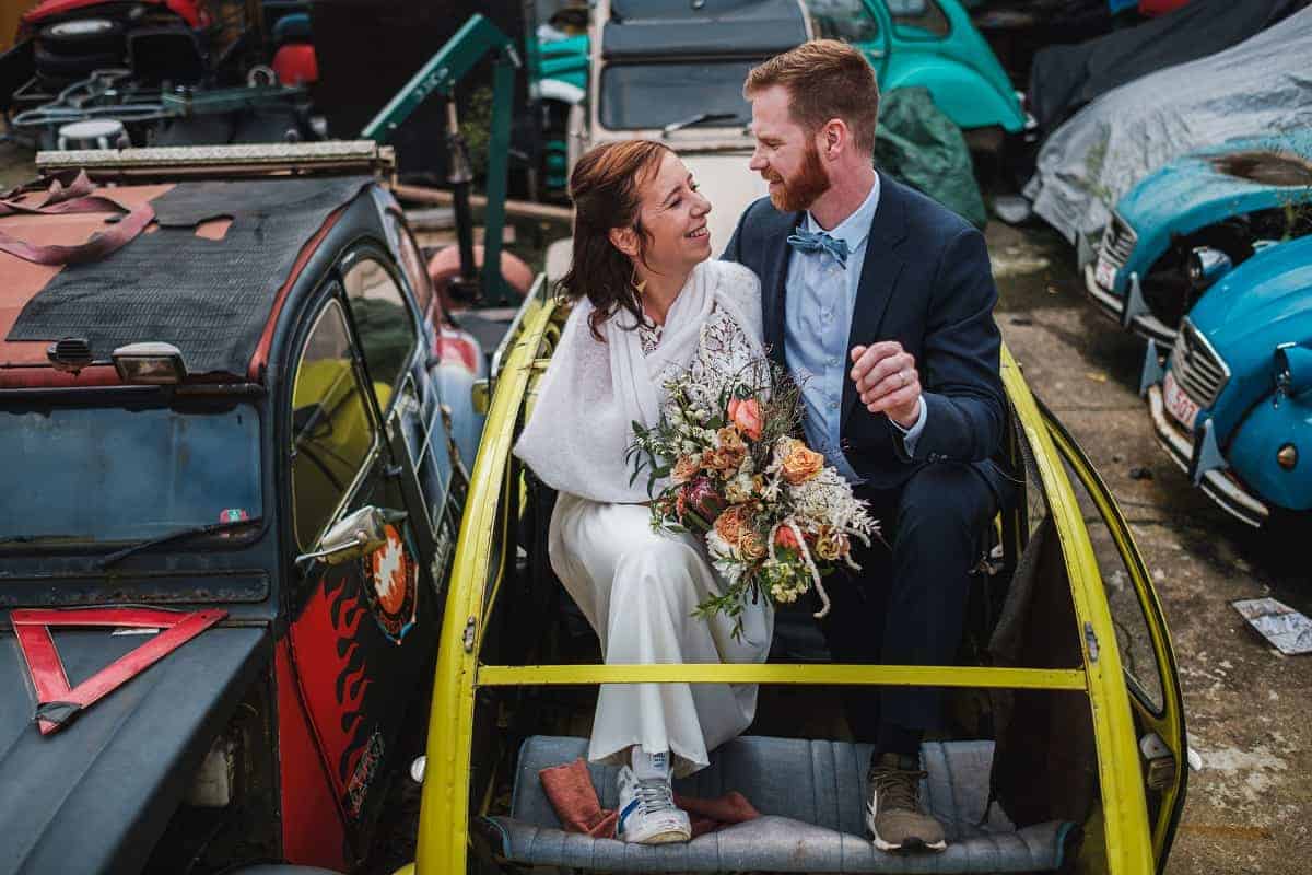 Evelien en Jan zijn hét bewijs dat alles anders kan op je trouwdag, als je er maar over durft na te denken. Doen we een romantische shoot met z’n tweetjes? Ja hoor, maar dan wel op het dak van het magazijn. Willen we XL lichtletters als decoratie? Natuurlijk, maar die maken we gewoon zelf hoor. (Jaja, de bruidegom was een méér dan verdienstelijke handige Harry!)