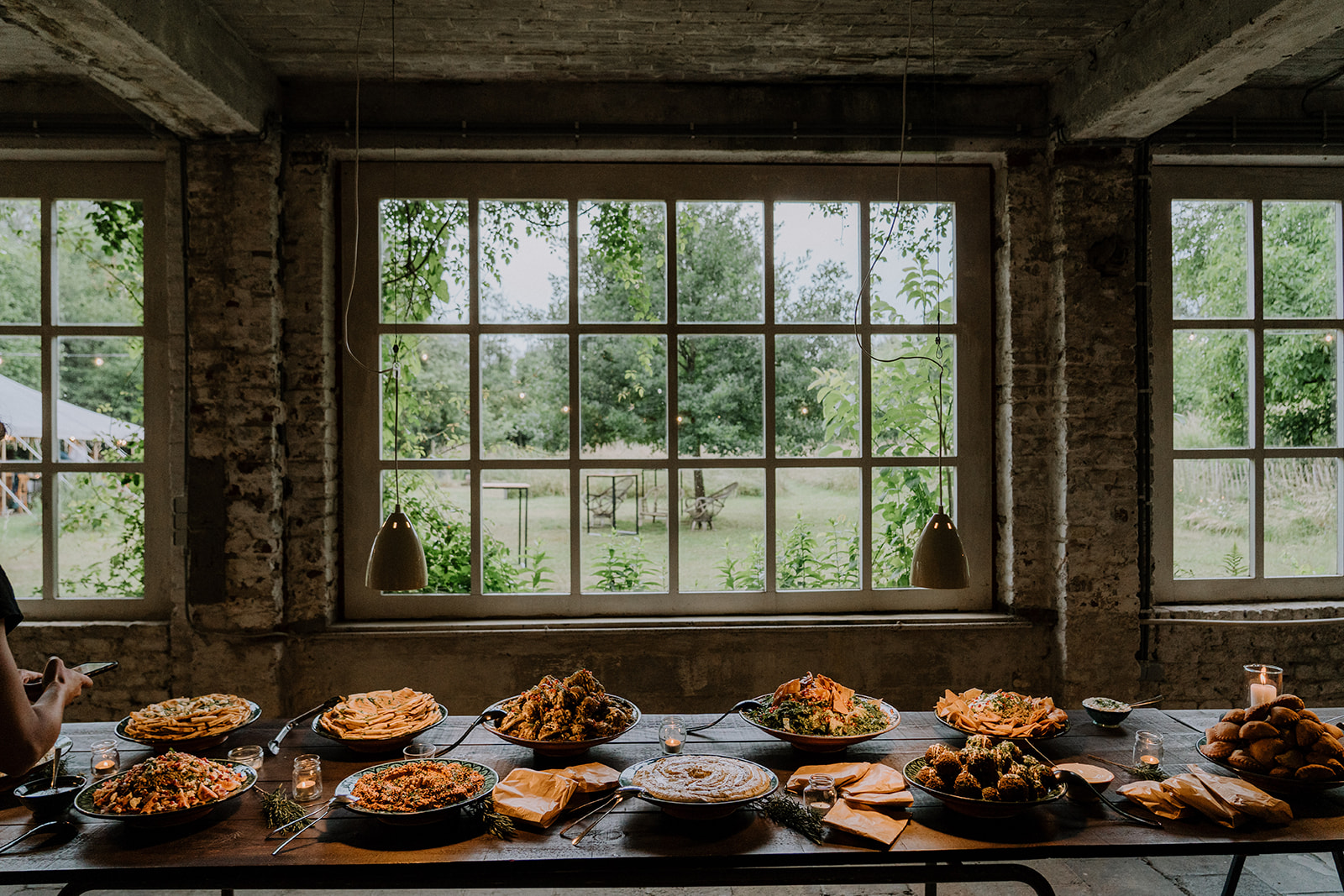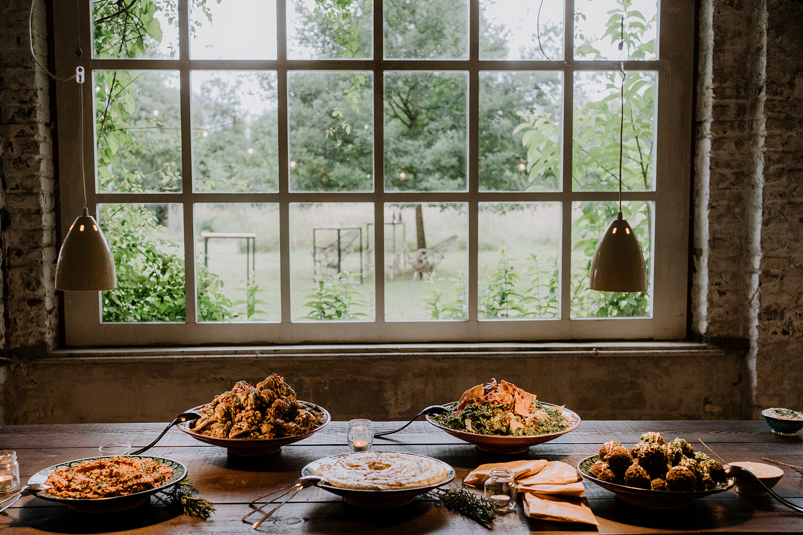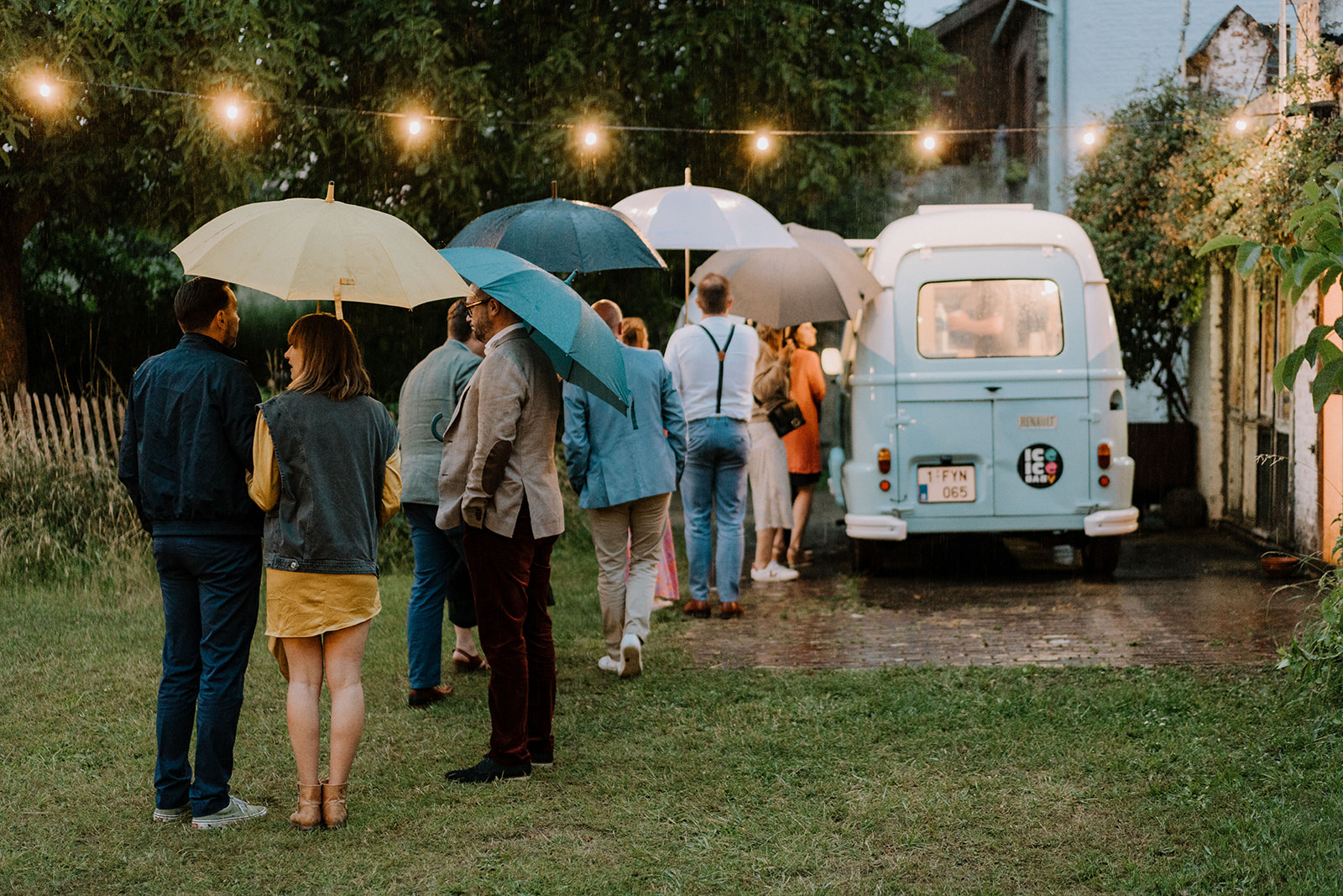Dankzij een gezellig aangeklede tent en veel dekentjes konden de trouwgasten alsnog buiten genieten van een overheerlijk Libanees-Midden-Oosters diner. Want wow, wat een prachtig buffet hadden de dames van Yalla Yalla gecreëerd! Een feestje voor alle zintuigen 🙂 Nadien werd iedereen nog getrakteerd op lekkere ijsjes van Ice Ice Baby.
