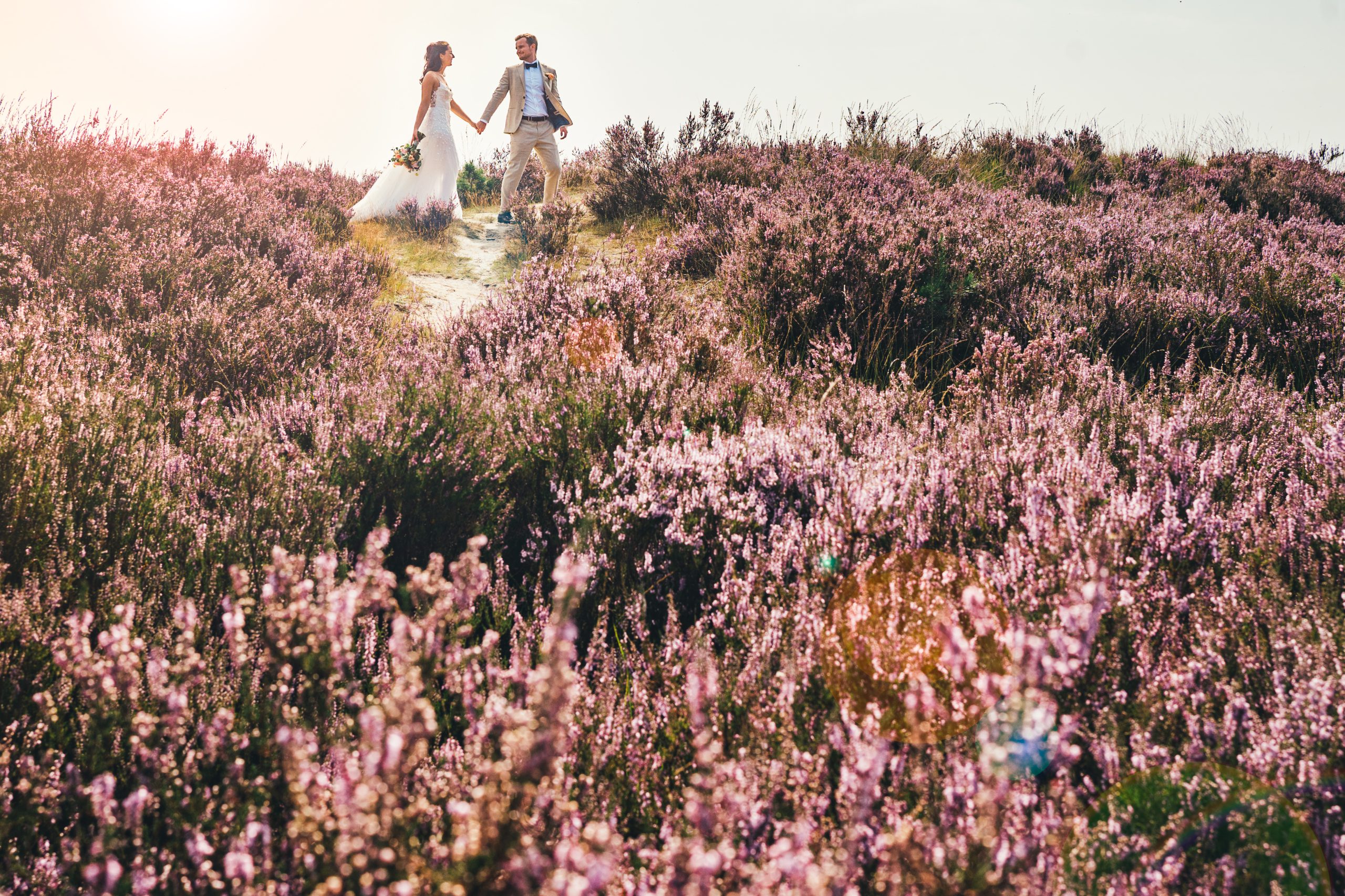 Na de first look en het gemeentehuis werd de suite thuis verwelkomd met een heerlijke high tea lunch van PatisserieCharlotte. En daarna vertrokken Charlotte en Arne met fotograaf Dieter van Speaking Through Silenceop fotoshoot naar de Kalmthoutse Heide. Tja, als je zo’n locatie zo dichtbij de deur hebt, moet je het niet verder gaan zoeken he 🙂