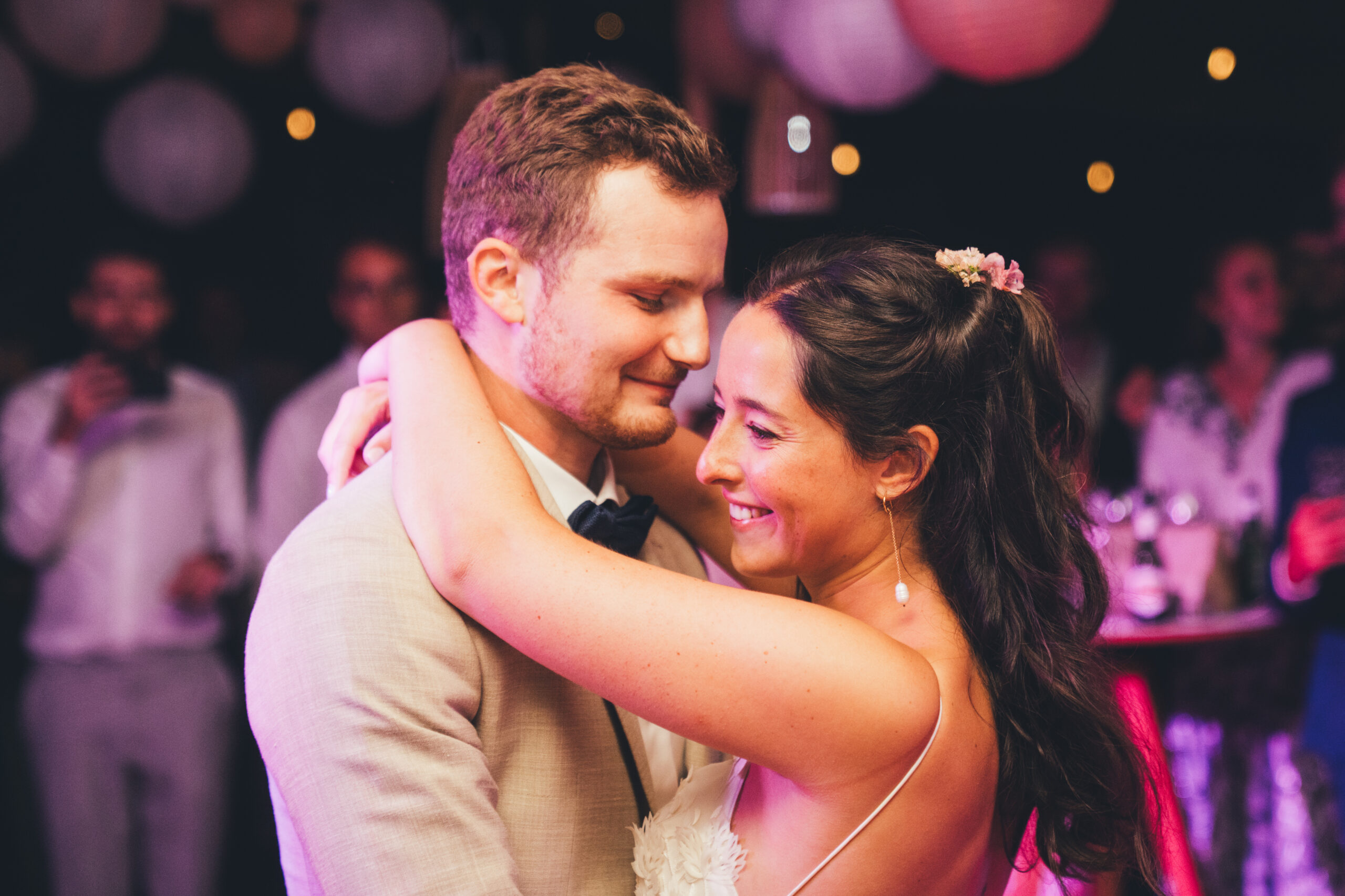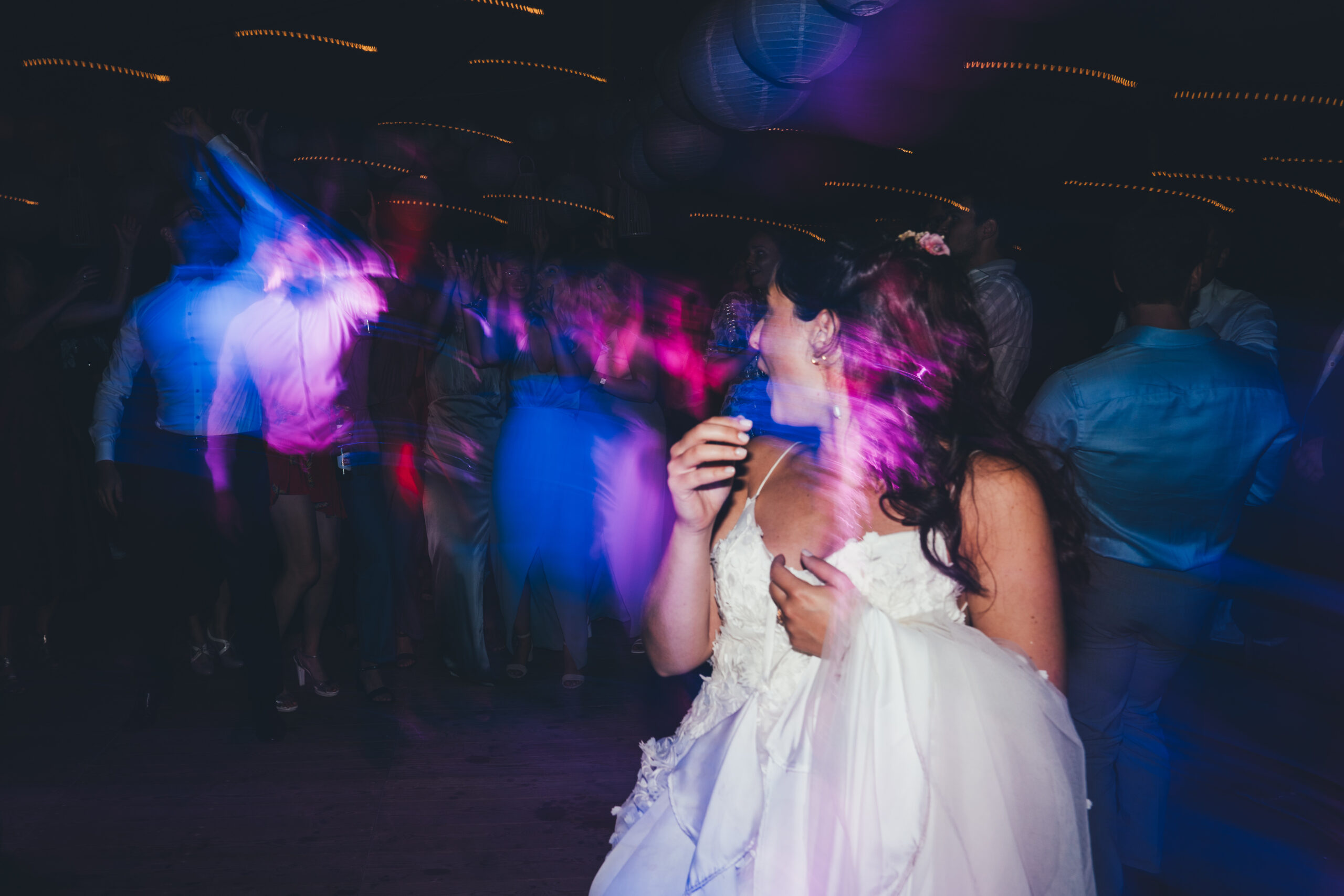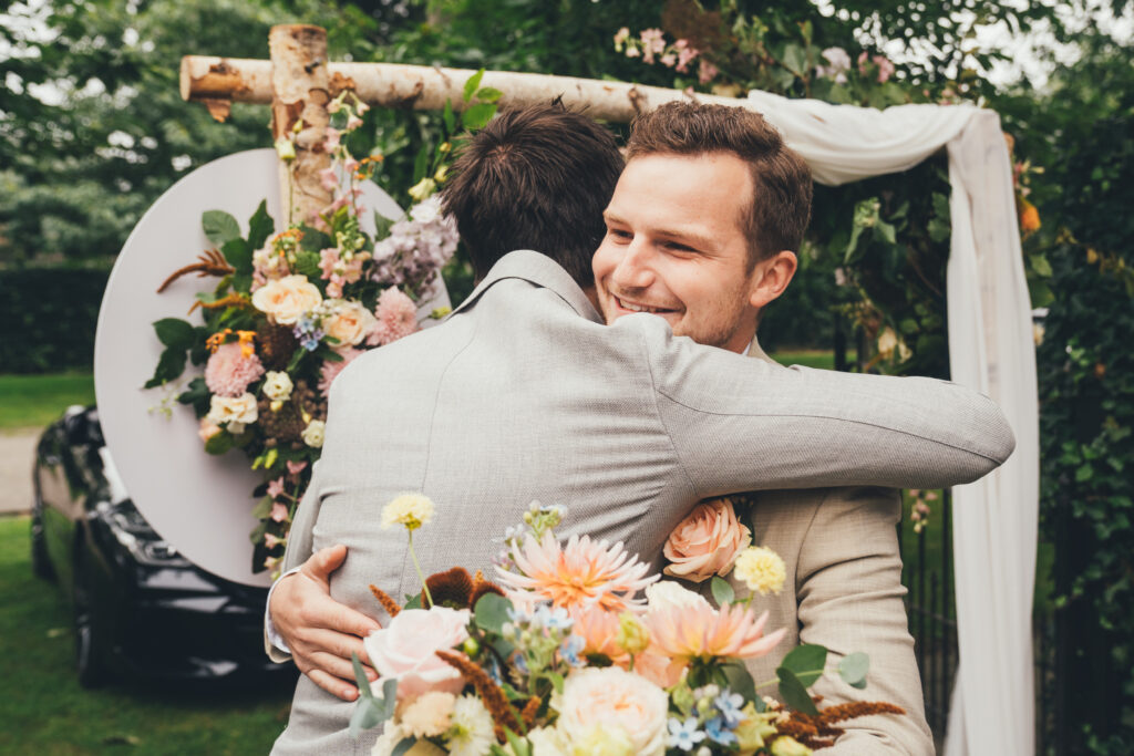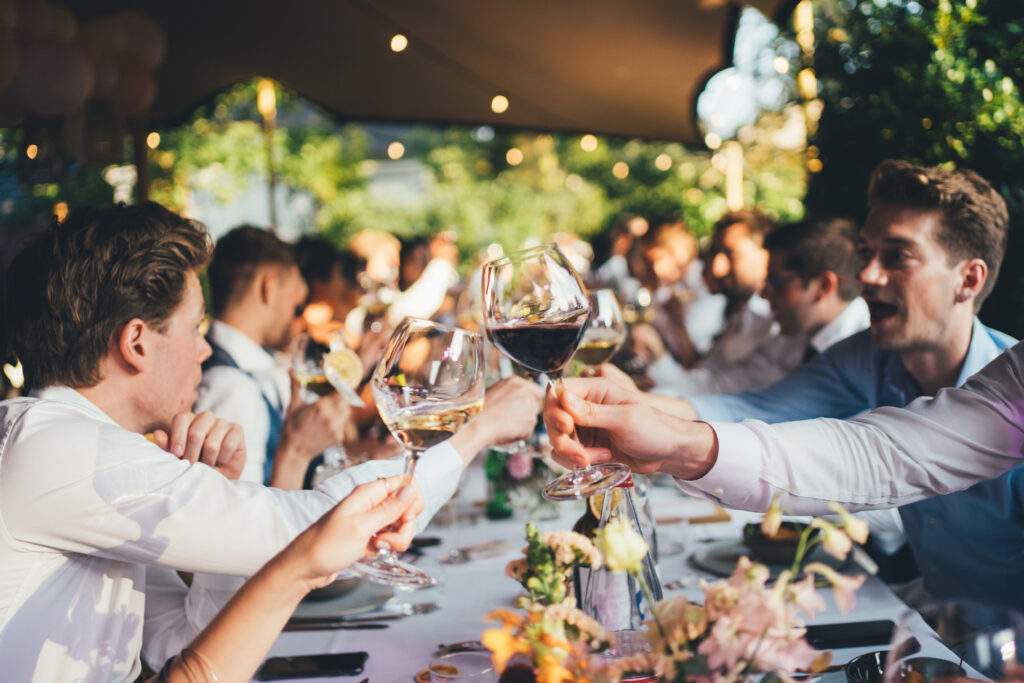 En meteen na de openingsdans werd duidelijk: vanavond is het FEEST! Dit was één van die momenten in september 2021 waarop we eventjes van alle coronamaatregelen verlost waren: er mocht terug gedanst worden. Alweer een fijne samenwerking met de DJ’s van Karamba, want het tot dan toe idyllische tuinfeest veranderde op slag in een wild feestende bende. De houten vloer van de tent veerde zelfs zó hard op en neer onder alle dansende voeten, dat er enkele glazen vanop een tafel gesneuveld zijn. Over knaldrang gesproken 😉