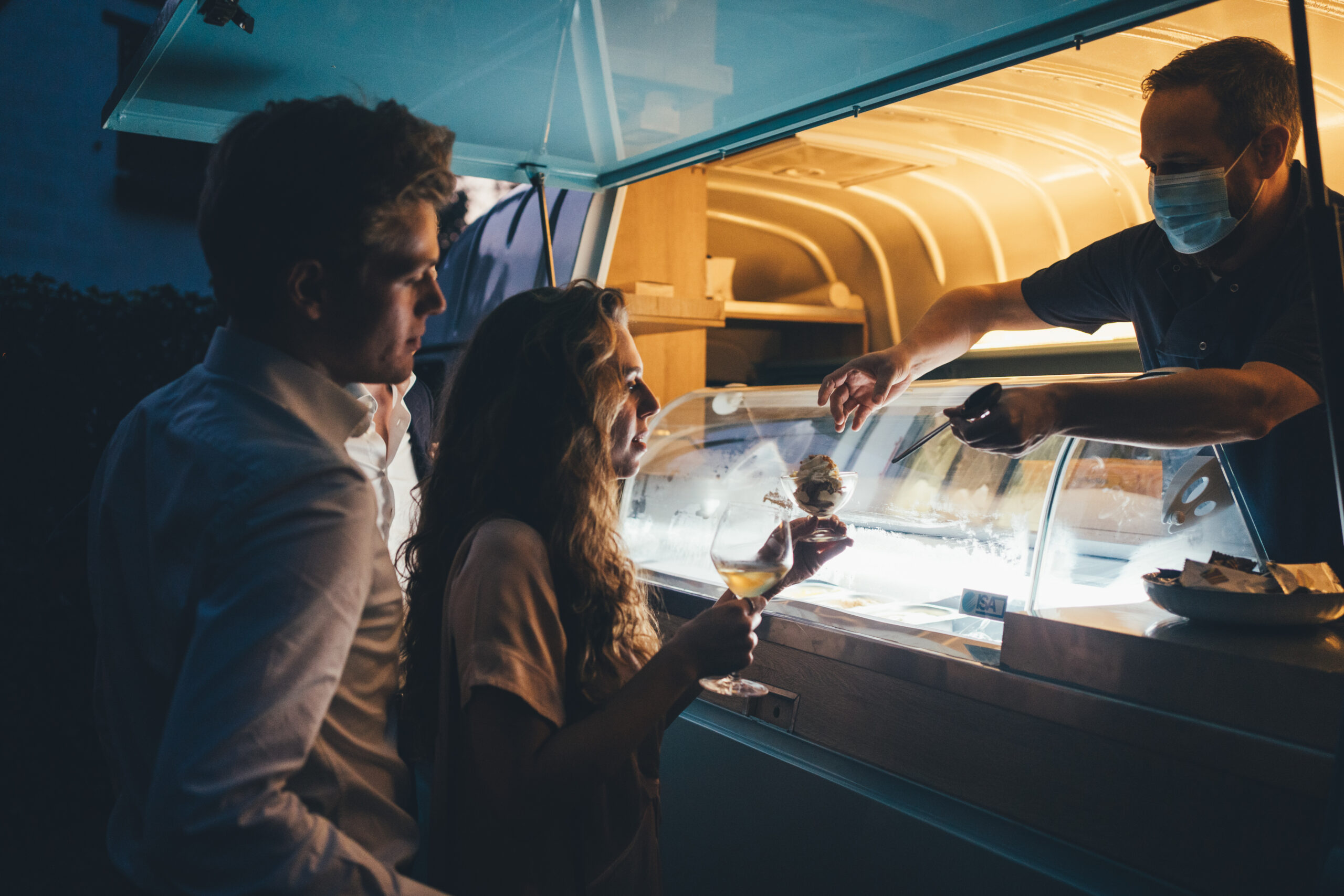 Het diner van Rook en Veewas ronduit heerlijk, en als dessert kozen Charlotte en Arne voor een dame blanche van Ice Ice Baby, rechtstreeks geserveerd uit een leuke retro Renault foodtruck.