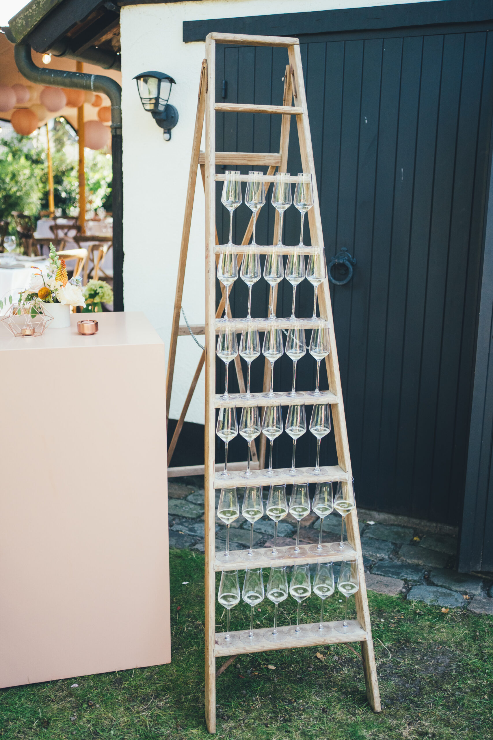 Charlotte en Arne droomden van een gezellig, relaxed feest waarbij ze een hele dag konden doorbrengen met hun hechte bende familie en vrienden. Tijdens ons eerste gesprek vroegen ze of het mogelijk was om in hun eigen tuin te trouwen, en daarbij hun huis binnen te “sparen”. Een begrijpelijke vraag! En dus bedachten we een plan om alles buiten te doen, van tent en toilet tot catering.